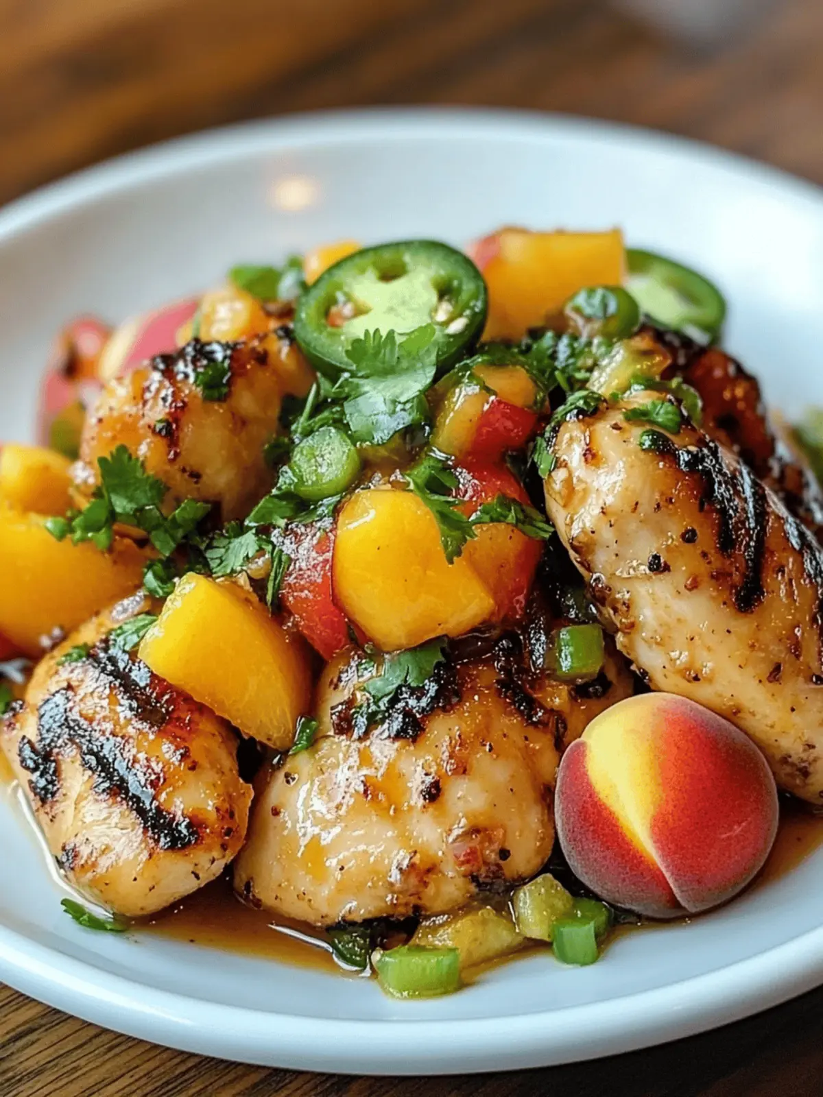 Peach Salsa: Made with diced peaches, jalape os, and cilantro, this zesty topping enhances the spicy notes of the chicken, making every forkful sing with flavor!